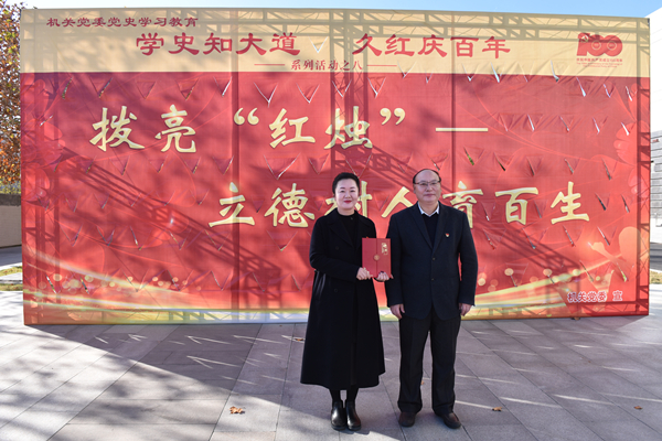 11月30日下午,机关党委拨亮“红烛”——立德树人育百生活动启动仪式在图书馆南楼外广场举行。校党委副书记杨士斌出席启动仪式。
